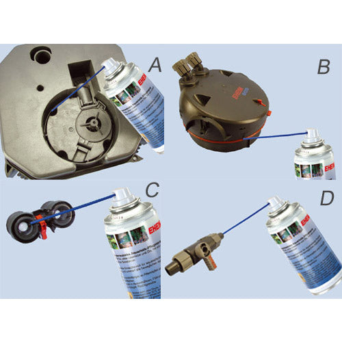 Bewegende onderdelen die regelmatig worden blootgesteld aan aquariumwater, hebben de neiging om na verloop van tijd vast te lopen of helemaal vast te lopen. Door de spray eenvoudig op de betreffende onderdelen aan te brengen, wordt dit probleem snel verholpen. De onderhoudsspray wordt speciaal aanbevolen om de wendbaarheid van kleppen, afsluitkranen, slangadapters, afdichtringen en nog veel meer te behouden.