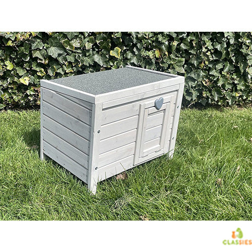 Ontdek het ultieme konijnen schuilhok: perfect voor jouw kleine vriendjes! Of je nu trotse eigenaar bent van schattige konijntjes of gezellige cavia's, dit hok is de droom van elk huisdier. Geplaatst in een ruime konijnenren, biedt het hok een veilige haven tegen zon of regen. Met een handig loopplankje betreden je dieren moeiteloos hun comfortzone, die je gemakkelijk kunt afsluiten door het plankje op te klappen. Verhoogd op stevige pootjes blijft het hok vrij van bodemkou, wat bijdraagt aan het welzijn van je dieren. Het hok, voorgebeitst in trendy kleuren, verdient nog een laagje beits voor langdurige bescherming. Met afmetingen van 53 x 37.5 x 63.5 cm past het perfect in elke tuin.