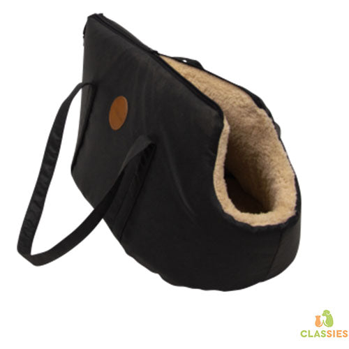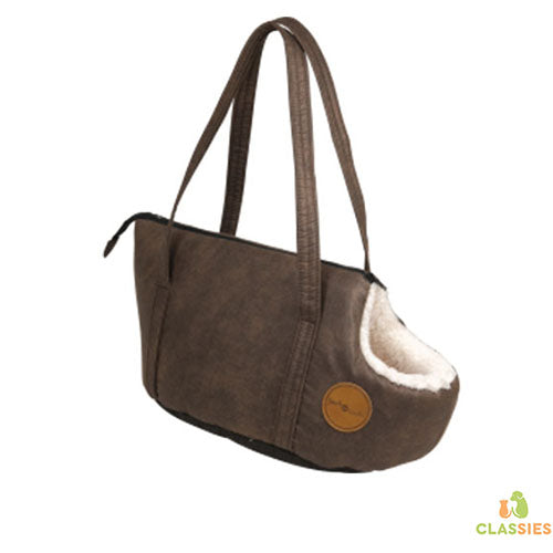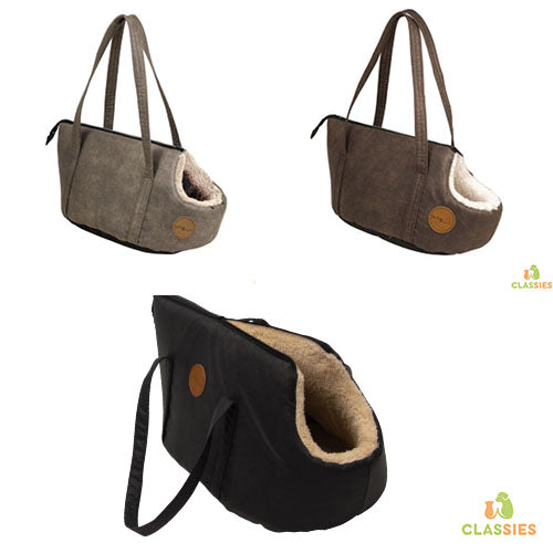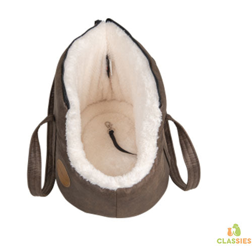Deze mooie draagtas is uitermate geschikt om op stap te gaan met uw kat of kleine hond. Ze is gemaakt van een zacht aanvoelend duurzaam kunstleder aan de buitenkant en een zachte warme stof aan de binnenkant. Wanneer je de zak helemaal openritst, kan je hem ook als warm mandje gebruiken.