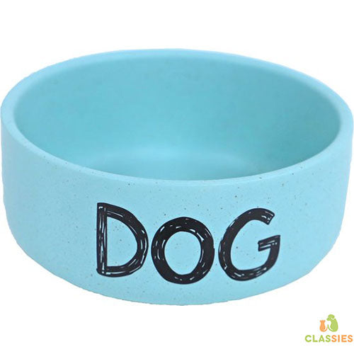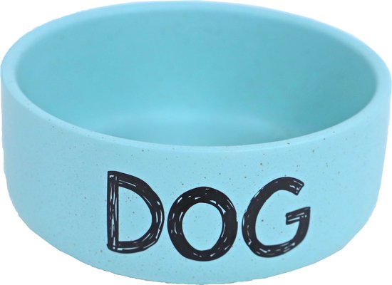 Boon honden eetbak aardewerk mat grijs of lichtblauw met DOG erop.