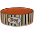 Stenen eetbak voor de hond, geglazuurd met vrolijk streepdessin.