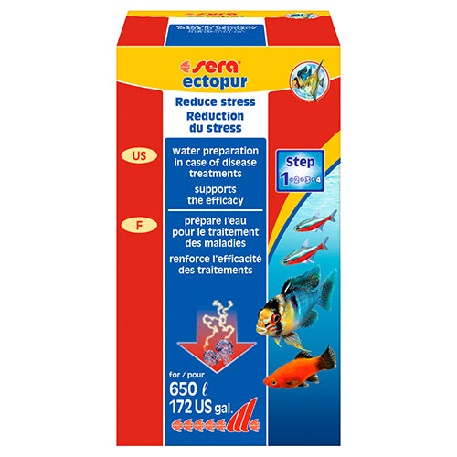sera ectopur is een zoutmengsel dat zuurstof vrij laat komen voor de verzorging bij stress en voor een effectieve ondersteuning van behandelingen met geneesmiddelen tegen uitwendige aandoeningen van vissen (b.v. ectoparasieten, bacteriën, verschimmelingen).