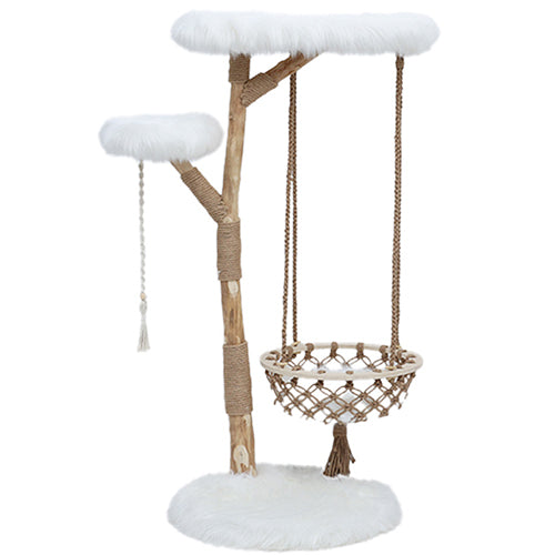Op strategische plaatsen is de boom omwikkeld met sisal waar je kat lekker aan kan krabben, een heerlijke comfortabele hangmat/schommel maakt het geheel af om jouw kat te voorzien van een ultieme “hangout”