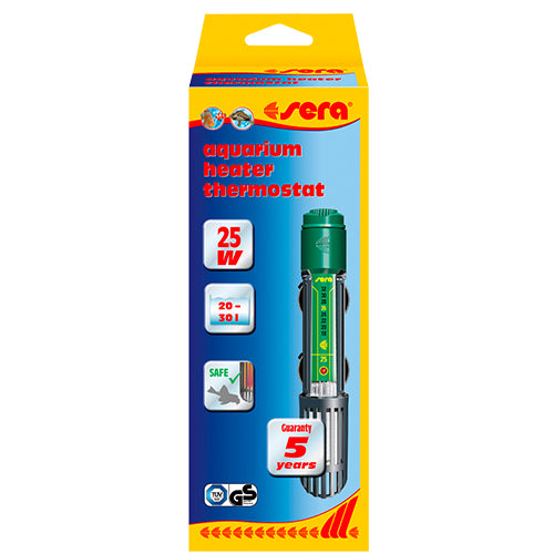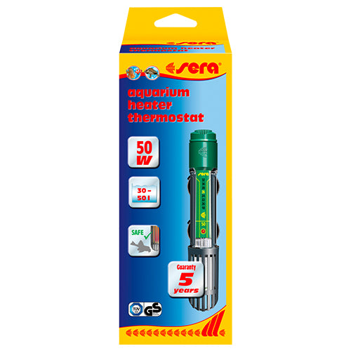 De sera aquarium-regelverwarmers zijn zeer kort en passen gemakkelijk in de kleinste aquariums. De bedrijfsindicatie (aan/uit) vindt plaats door een glimlamp.