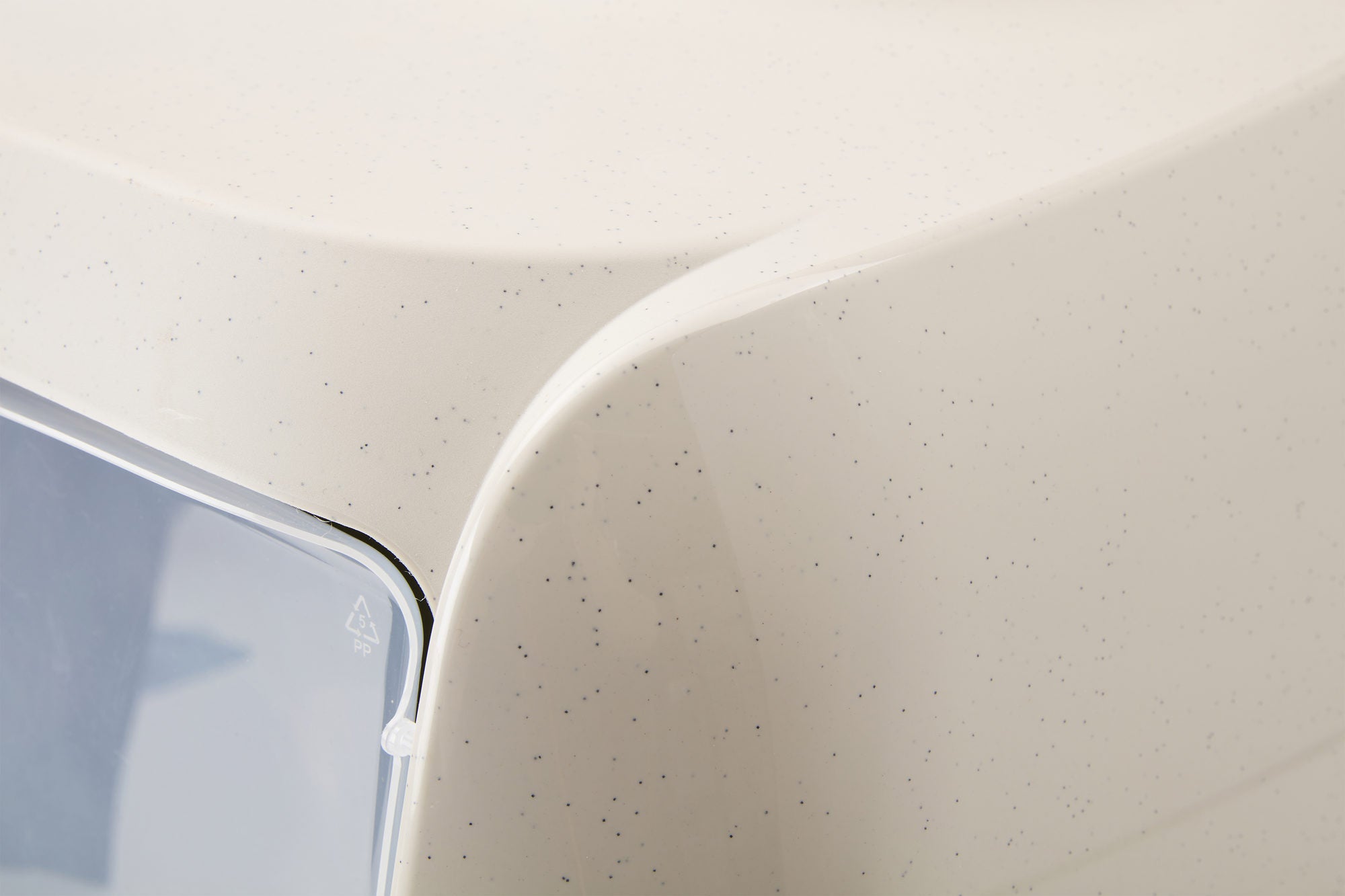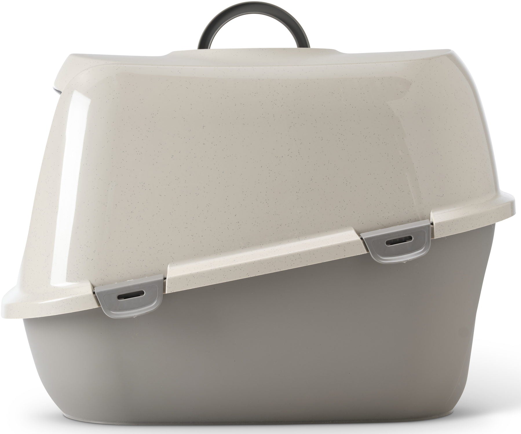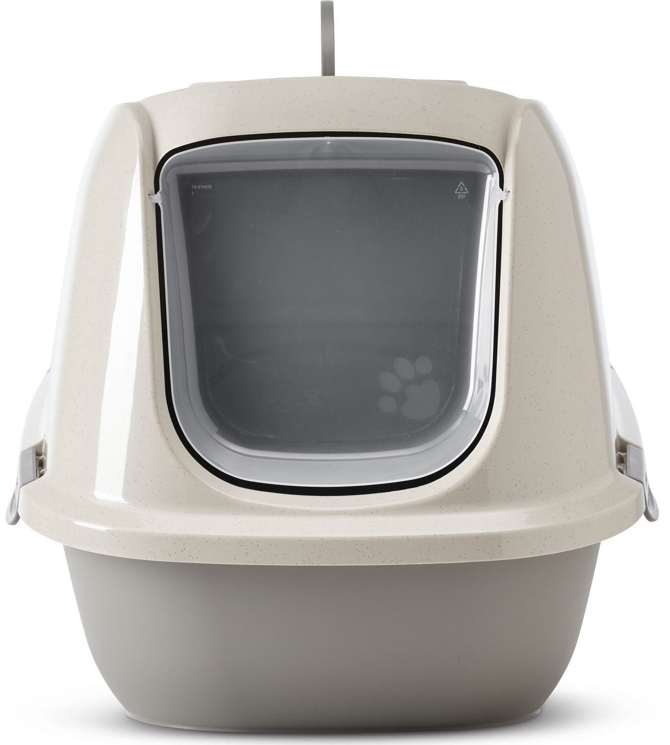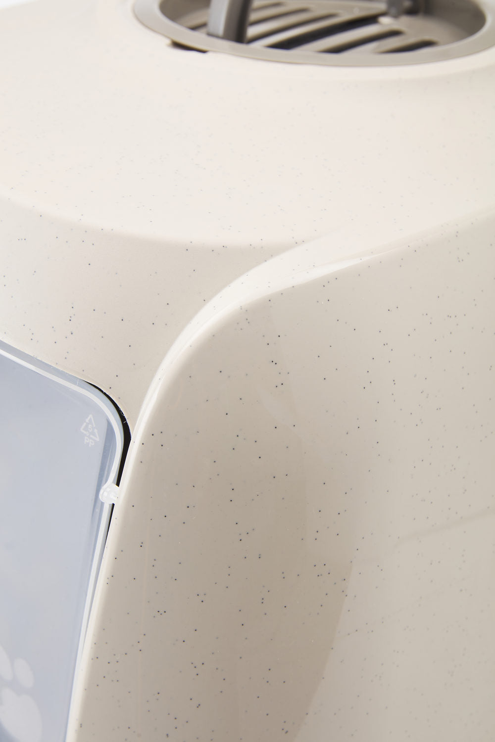 Hier is Leo, een groot kattentoilet met kap, gemaakt van ten minste 90% gerecyclede materialen.