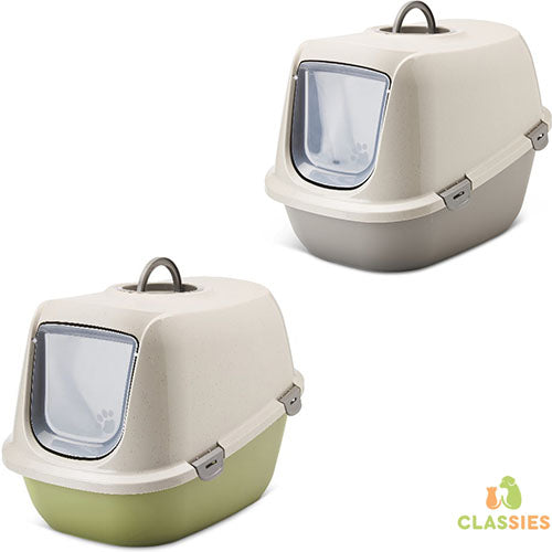 Leo heeft een doorzichtige kunststof klapdeur en een vervangbaar filter om vieze luchtjes kwijt te raken. Het kattentoilet kan gemakkelijk verplaatst worden dankzij de handgreep. De kap wordt aan de kattenbak bevestigd met clips die gemakkelijk kunnen worden losgemaakt om de bak schoon te maken.