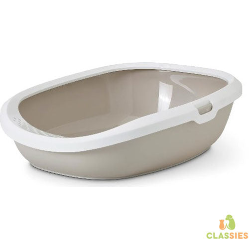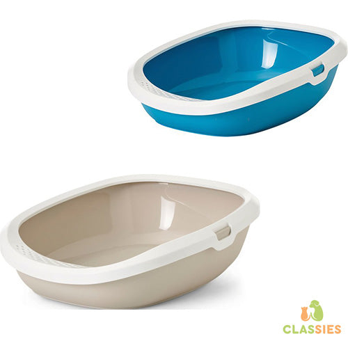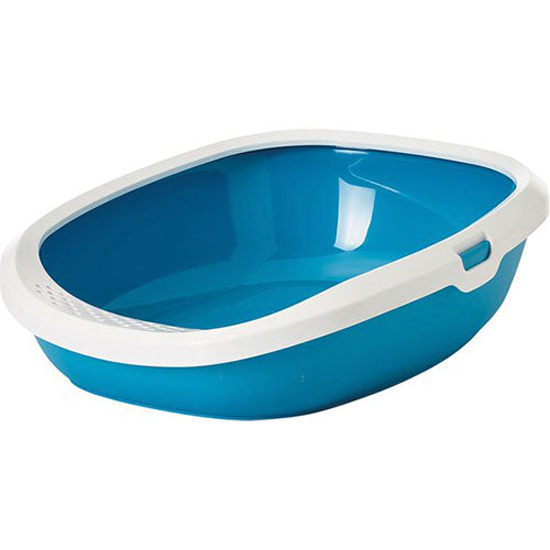 De gaten in de rand voorkomen dat er kattenbakvulling buiten de bak valt bij het weggaan. De verhoogde achterkant houdt urine en kattenbakvulling binnen voor een schone omgeving rond de bak. De Gizmo bak heeft een lage instap wat de bak geschikt maakt voor jongere, oudere en zieke katten.