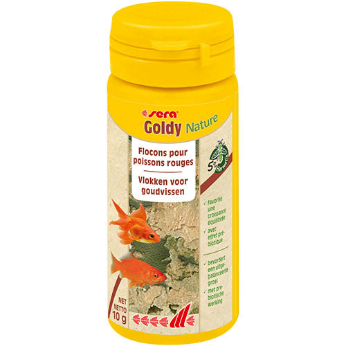 sera Goldy Nature is het hoofdvoeder voor kleinere goudvissen en hun kweekvormen zoals bijv. de Shubunkin, sluierstaart of sarasa en andere koudwatervissen, dat geen kleur- en conserveermiddelen bevat.