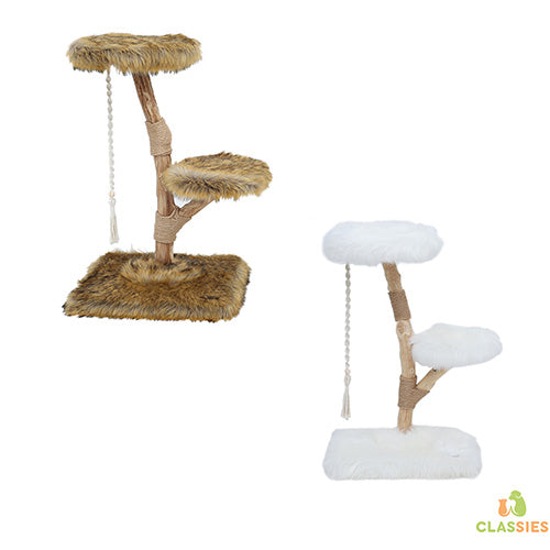 Deze plateaus zijn voorzien van comfortabel langharig pluche wat de klimboom een superluxe uitstraling geeft.