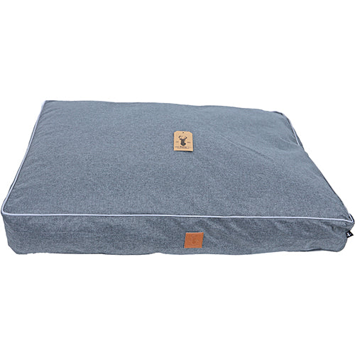 Boony ‘Est 1941’ ligkussen highland grey, highland sand en highland badger is een comfortabel ligkussen voor honden.