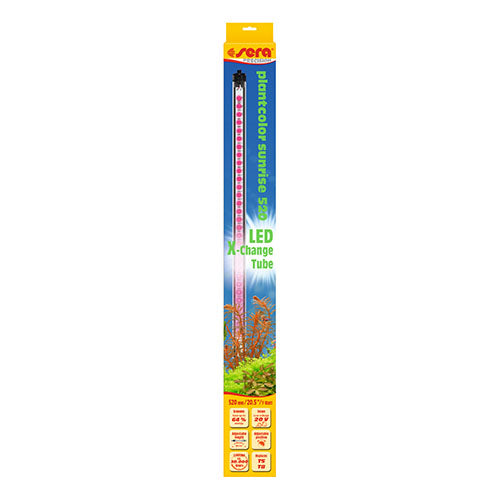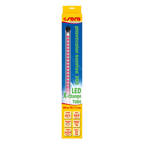 De sera LED X-Change Tube plantcolor sunrise werd speciaal voor de verlichting van planten ontwikkeld en bevorderd de fotosynthese. Zo kan een optimale groei en de vermeerdering van de onderwaterplanten gegarandeerd worden. De rode en blauwe lichtaandelen accentueren de kleuren van de planten en genereren en kleurversterkend effect.