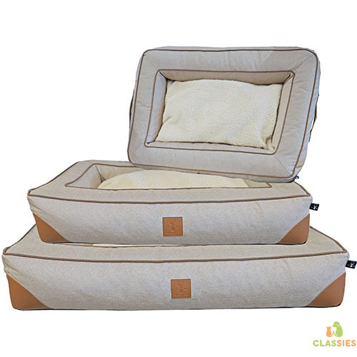 De Boony EST 1941 square sofa is een uitermate stevige en comfortabele sofa in de landelijke uitstraling , voorzien van een kussen die aan beide zijden kan worden gebruikt. Het kussen en de rand van de sofa zijn voorzien van een rits die het reinigen van de hoezen vereenvoudigen (handwas).