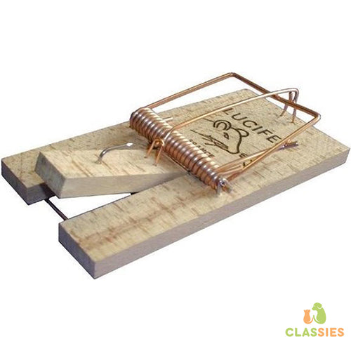 De Franse lucifer muizenvallen zijn de klassieke houtjes, met koperdraad gedraaid. Simpel en effectief.