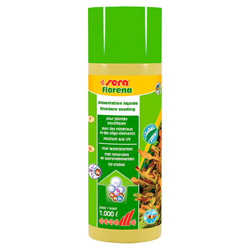 Waterplanten spelen een centrale rol in het aquarium, want ze onttrekken schadelijke stoffen en voedingsstoffen voor de algen aan het water. Om ervoor te zorgen dat de waterplanten deze belangrijke taak kunnen vervullen, voorziet sera florena de planten van alle belangrijke mineralen en sporenelementen die ze voor een gezonde en kleurrijke groei nodig hebben. Deficiëntieverschijnselen worden zodoende voorkomen, zonder dat het water met overtollige substanties belast wordt.
