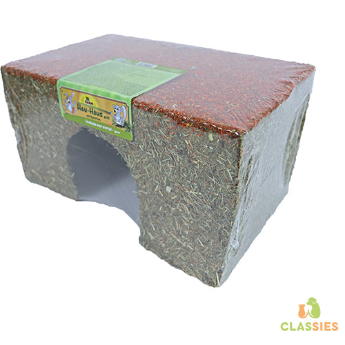 Wat het ook mag zijn; slapen, knabbelen, verstoppen, klimmen of knagen: met het hooihuis is alles mogelijk. Van 100% natuurlijk materiaal, natuurlijk zonder kunstmatige kleefmiddelen.