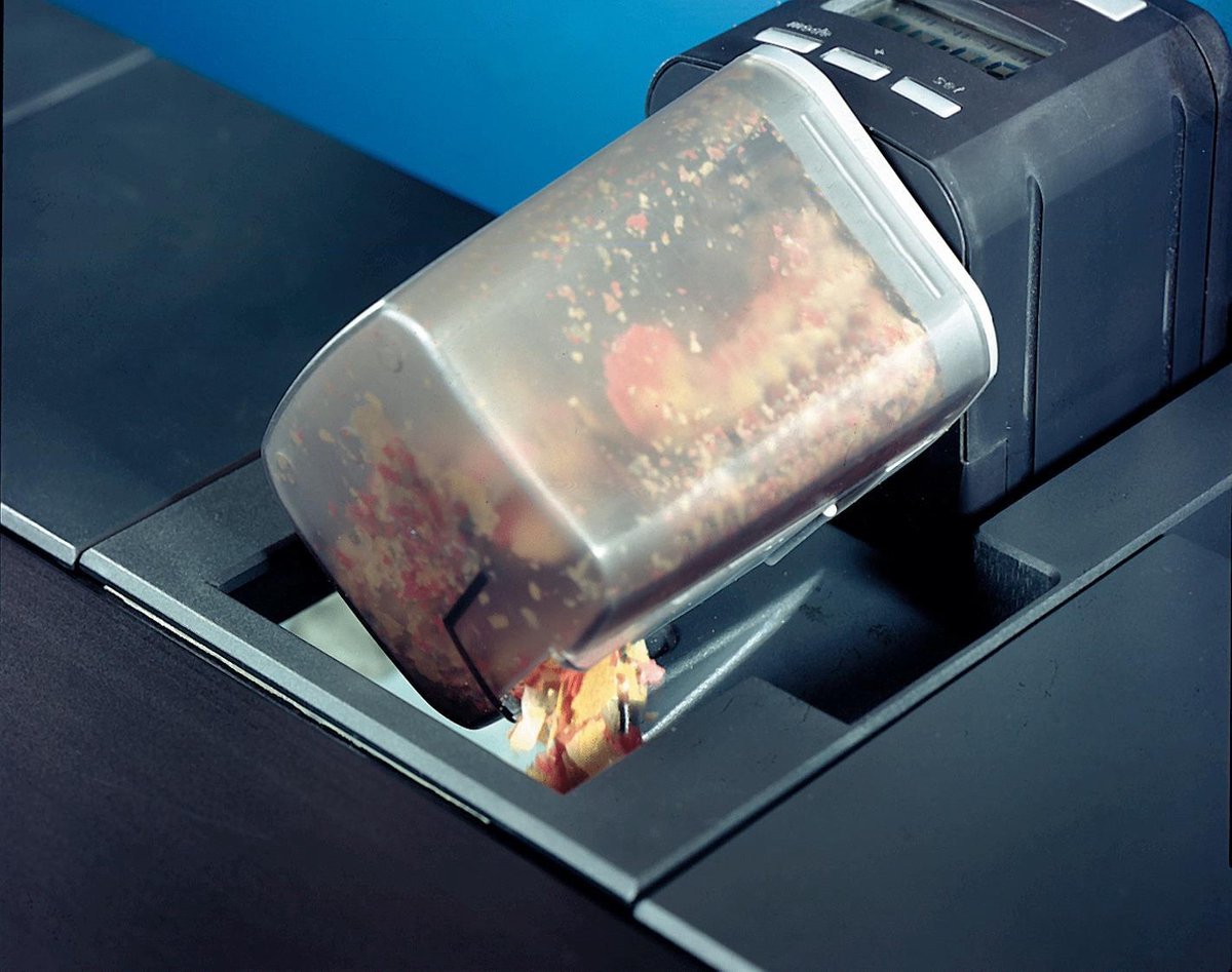 De compact Eheim voederautomaat wordt geleverd met batterijen. De constant van lucht voorziene voederkamer zorgt voor constant droog voer. Met de eenvoudige programmering bepaald u wanneer de aquarium bewoners kunnen eten. Ook twee keer voeren is mogelijk. Door een eenvoudige knopdruk kan men tussendoor voeren. Een alarmsysteem geeft tijdig aan wanneer de batterijen beginnen te minderen. De bedieningsknoppen zijn nu tegen spatwater beschermd. Inhoud ca 100 ml.