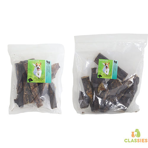 De lamslongen zijn een heerlijke traktatie voor uw trouwe viervoeter. De lamslongen zijn kauwlevel 1 en daardoor geschikt voor de wat oudere hond en minder fanatieke kluivers.