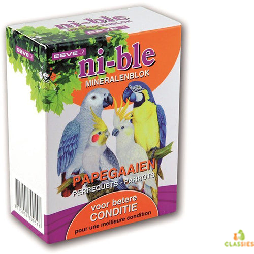 Om in de natuurlijke vitaminen- en mineralenbehoeften van uw vogel(s) te voorzien mag dit dan ook niet ontbreken. Vogels pikken naar behoeften stukjes van de NI-BLE af. Hierdoor houden ze ook hun snavel kort. De blok is voorzien aan de achterkant van een ijzerdraad zodat u deze makkelijk aan de tralies van de kooi kunt bevestingen. U plaatst de blok het beste ter hoogte van een stok.