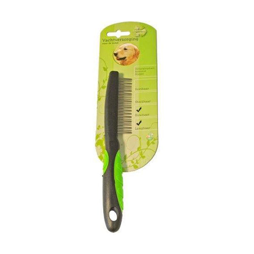 Deze verzorgingskam met gemiddelde tandwijdte verzorgt de vacht van uw hond door deze los te maken, op deze manier worden losse haren, vuil en eventuele klitten verwijderd. Deze verzorgingskam is geschikt voor alle honden met een dunne langharige vacht. Door de roterende tanden glijdt deze kam gemakkelijker door de vacht. Het regelmatig kammen en borstelen van uw hond draagt er aan bij dat de vacht in topconditie blijft.
