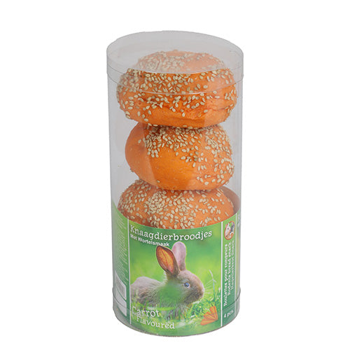 Geef jouw knaagdier een heerlijke en knapperige traktatie met deze oranje knaagdierbroodjes! Dankzij de opvallende kleur worden ze ook wel wortelbroodjes genoemd. De broodjes zijn verrijkt met sesamzaadjes voor een extra smaakvolle bite en helpen het natuurlijke knaaginstinct te ondersteunen.