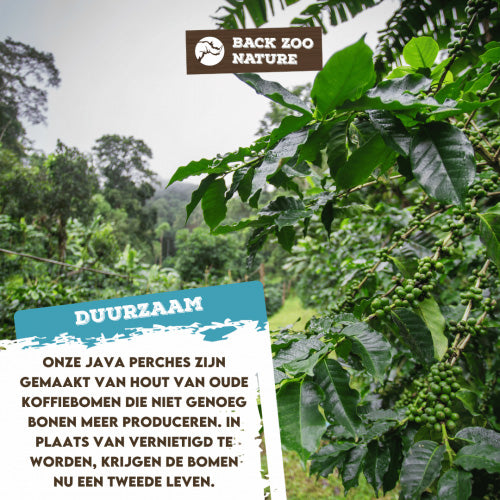 • Duurzaamheid: De multi perch xsmall wordt gemaakt van oersterk Java hout afkomstig van oude koffiebomen die niet langer genoeg bonen produceren.
